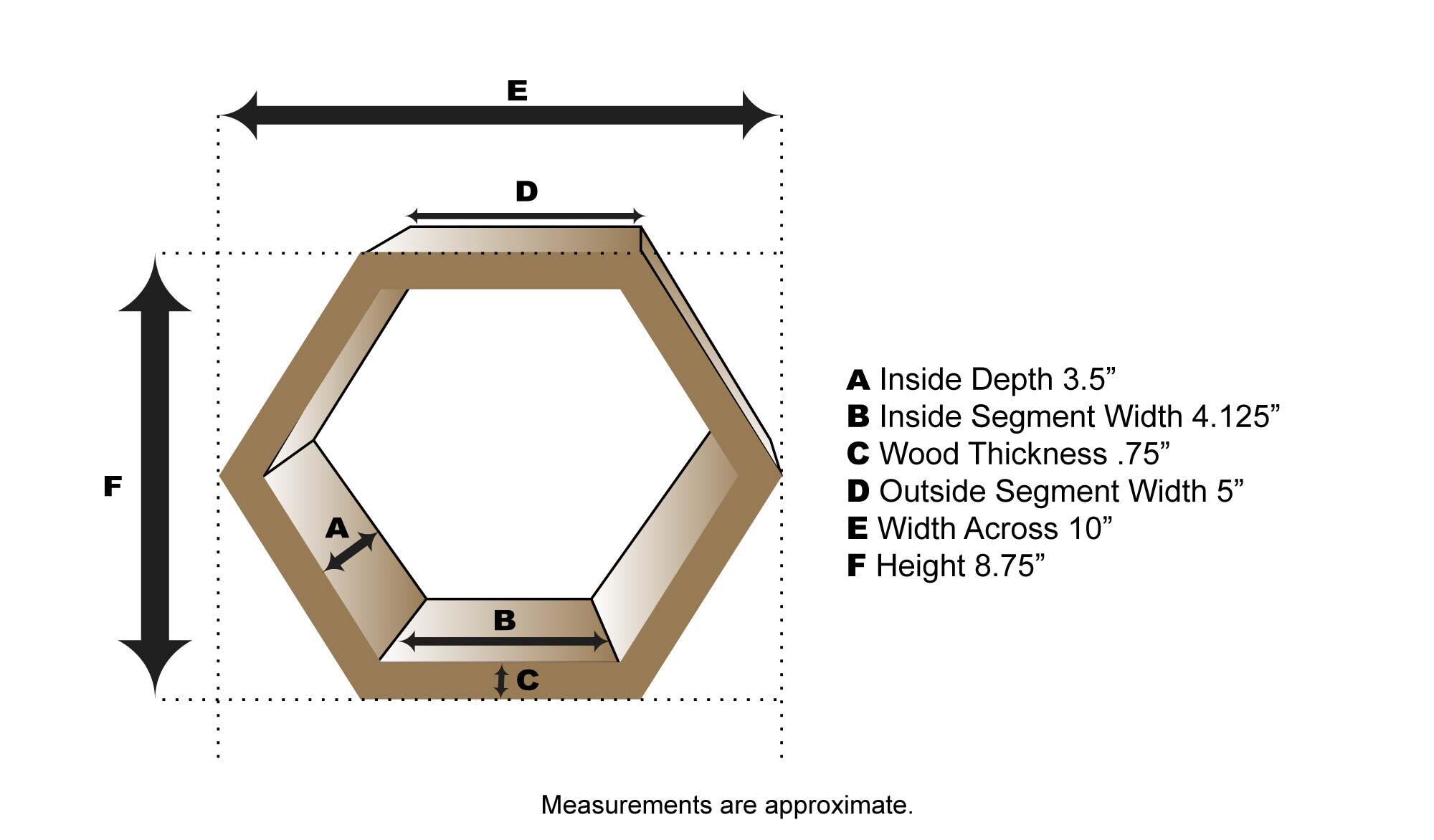 Floating Shelves Hexagon Honeycomb Wood shelf Handmade in USA 8.75" x 10" x 3.5"